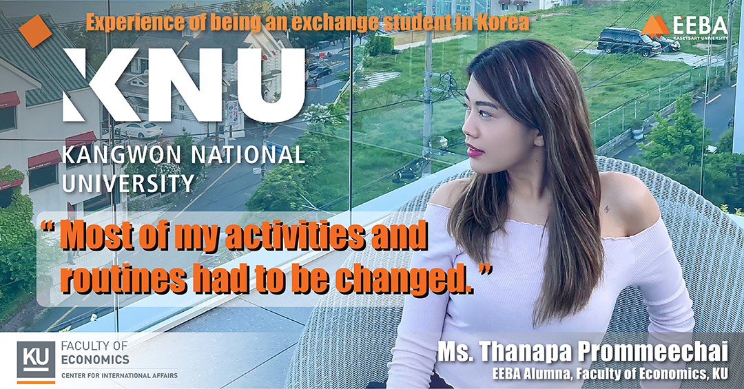 My name is Thanapa Prommeechai or you can call me ‘Beam’. I am in my final year as an Economics student at the EEBA program in Kasetsart University. I applied for a scholarship from KU to be an exchange student at Kwangwon National University in South Korea. There are several reasons why I chose to study in South Korea. Firstly, I had been to Korea before as a tourist but only for a few days. I was only able to experience Korea and its culture and language roughly. I realized that staying in Korea for just a few days was not enough so I jumped at the opportunity with assistance from KU and ECIA to study abroad.