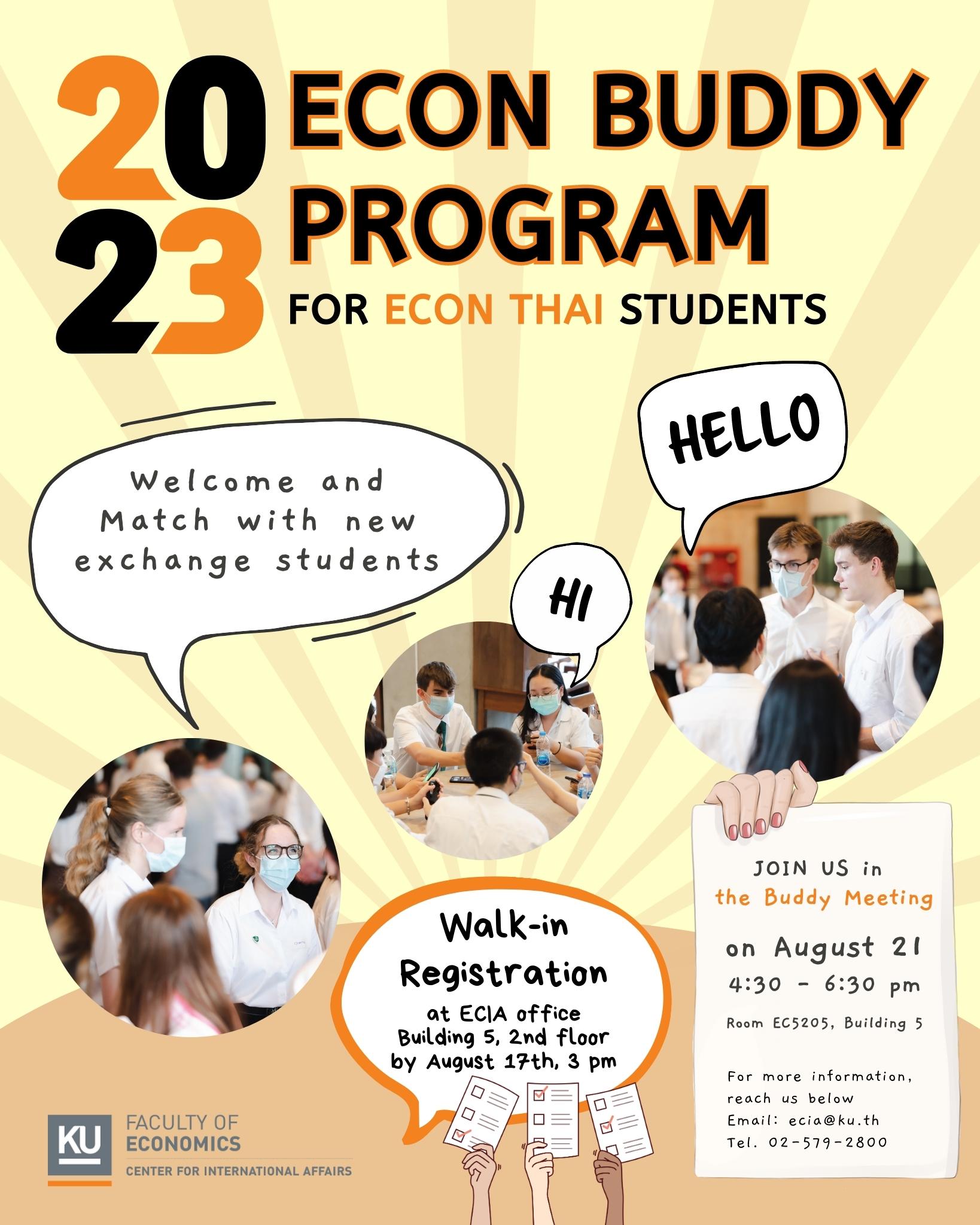 📣 Join us and MEET your international buddies in the ECON BUDDY PROGRAM (1st semester) on August 21 (Monday), 2023 at 4:30 pm!
